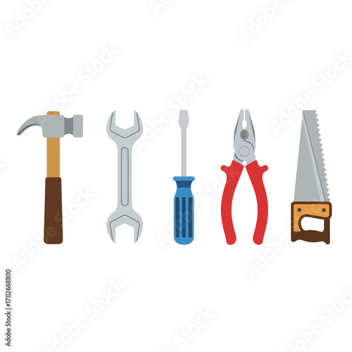 tool, hand tool, hammer, wrench, screwdriver, plier, saw, construction, bricolage, repair, maintenance, workshop, hardware, equipment, instrument, building, manual, labor, craftsmanship, industry, metal, wood, tool kit, set, collection, illustration, vector, graphic, design, flat, icon, isolated, white background, object, work, job, project, utility, silhouette