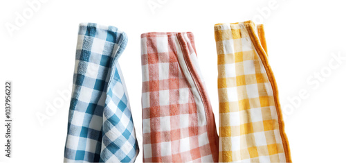 collection of three kitchen towel isolated transparent background