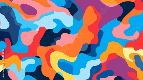 colorful abstract design in an abstract pattern, in the style of bold outlines, flat colors, nature-inspired camouflage