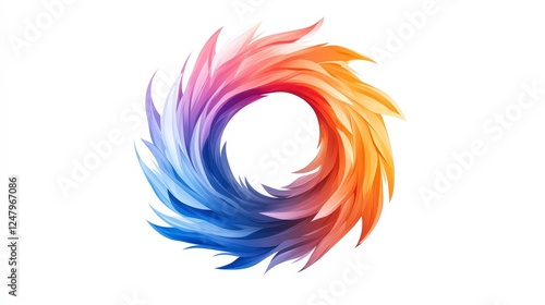 Colorful Abstract Swirl Design with Gradient Feathers in Circle Shape