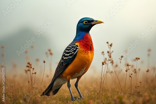 Colorful Bird in a Field of Dried Plants - Vibrant Avian Portrait