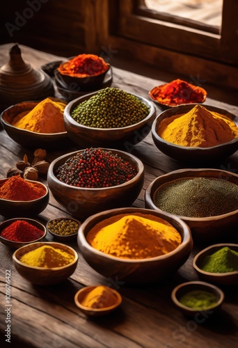 colorful dish settings featuring vibrant spices displayed artistically captivating culinary experience, appetizer, basil, berry, bean, blend, broil