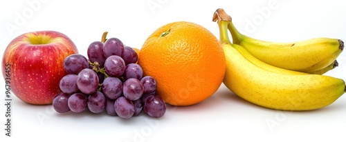apple, grape, orange, banana, fruit, red, purple, yellow, white, background, arrangement, fresh, healthy, delicious, juicy, sweet, tart, vitamin, diet, nourishment, food, snack, breakfast, lunch, dinner, natural, organic, vegan, vegetarian, colourful, bright, high-coloured, still, life, photo, studio, isolated, composition