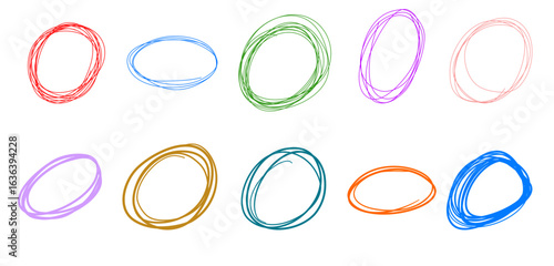 Colorful Hand Drawn Circle Sketches Set Isolated on White
