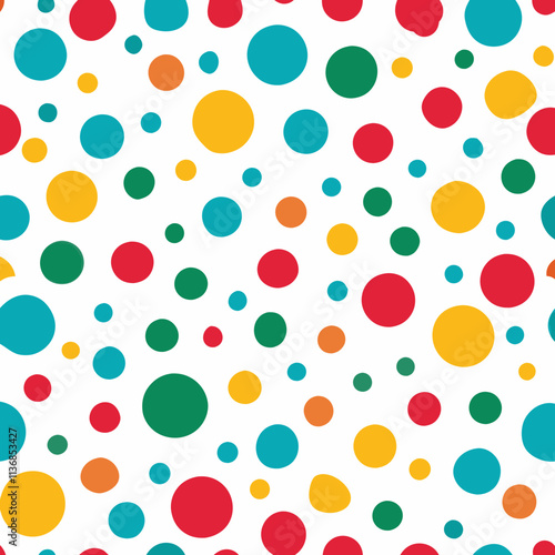 pois, colourful, circle, red, yellow, green, blue, white background, pattern, playful, seamless, bright, cheerful, fun, modern, geometric, abstract, vibrant, childlike, repeatable, cute, happy, decorative, simple, lively, whimsical, energetic, dynamic, joyful, festive, creative, wallpaper, wrapping paper, retro, artistic, pop art, textile, many-coloured, minimal, bold, contemporary, eye-catching, blithe