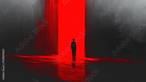 Colorful silhouette pf person standing in monochrome crowd of different people,surreal unique and different concept,loneliness in society,shadow,freedom,Love,be yourself,Stand out from the crowd.