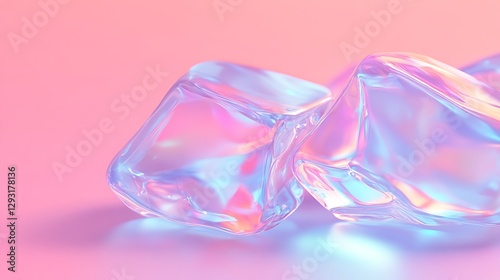 Colorful Transparent Ice Cubes on Soft Pink Background with Reflections and Light Effects