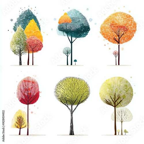 tree, seasonal, diversity, colourful, showcase, plant, autumn, spring, leaf, forest, trail, flora, park, trunk, beauty, design, nature, hike, graphic, eco, palette, path, species, artwork