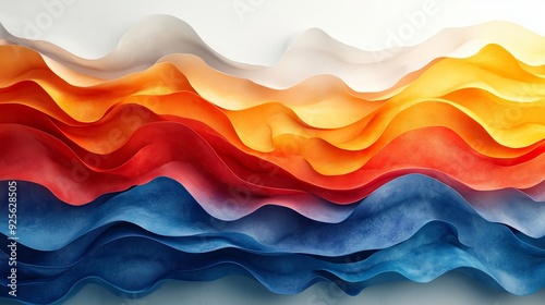 Colorful waves of textured paper in gradients of orange, pink, and blue arranged harmoniously on a light background