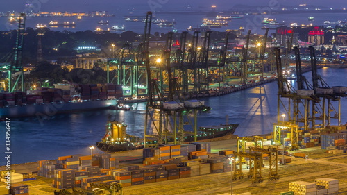 Commercial port of Singapore aerial day to night timelapse.