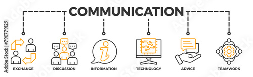 Communication banner web icon vector illustration concept with icon of exchange, discussion, information, technology, advice, and teamwork