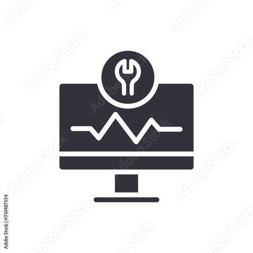 Computer Monitor Repair With Wrench Diagnostics Icon Vector