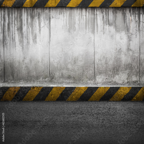 Concrete wall and asphalt. Abstract interior background