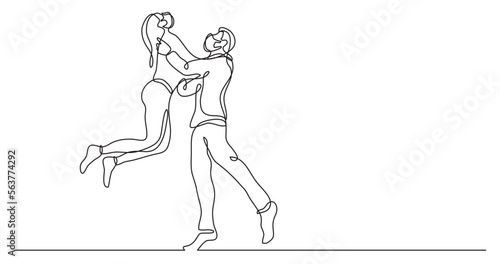 continuous line drawing vector illustration with FULLY EDITABLE STROKE - happy young couple having fun wearing face mask
