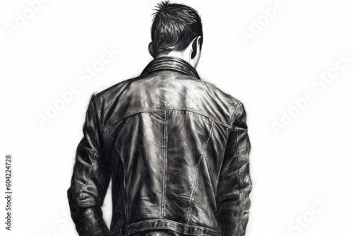 generative, ai, man, leather jacket, fashion, style, trendy, cool, edgy, outfit, clothing, accessory, black, brown, masculine, urban, rebel, motorcycle, biker, rocker, punk, classic, timeless, iconic, jacket, coat, apparel, attire, clothes rack, menswear, illustration, drawing, vignetting, art