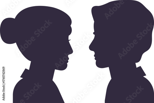silhouette, couple, man, woman, face, profile, human relationships, communication, connection, togetherness, love, partnership, looking, male, female