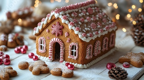 gingerbread, house, candy, decoration, holiday, festive, sweet, baking, cookie, treat, icing, sugar, christmas, dessert, warmth, celebration, traditional, home, cosy, craft, seasonal, table, red, white, mint, favor, gathering, background, rustic, cheerful, party, winter, joy, handcraft, festive season, holiday spirit, winter landscape, childhood, nostalgia, spice