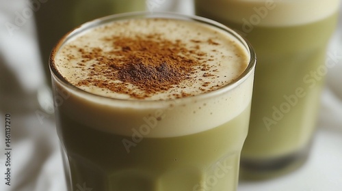 Creamy matcha drink with cinnamon