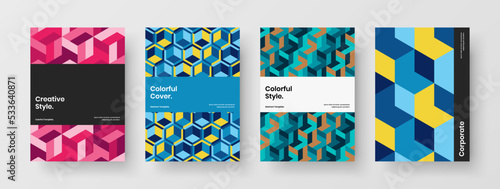 Creative corporate cover A4 vector design concept set. Original mosaic tiles handbill layout composition.