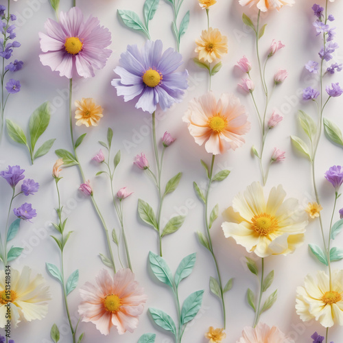 creative neutral theme with cosmos daisy floral pastel palette on a smooth white surface for content visuals or advertising shots floral botanical illustration wallpaper background