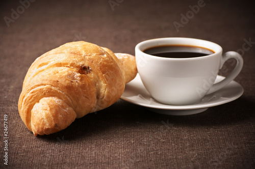 bake, baked, bakery, beverage, black coffee, bread, breakfast, brioche, brown, bun, cafes, canvas, clothes, hot drink, croissant, cup, dark, dessert, drink, food, french, horizontal, linen, nobody, pastry, saucer, snack, still life, sweet, tablecloth, white