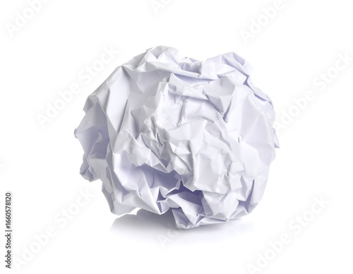 Crumpled white paper ball isolated
