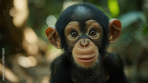 chimpanzee, monkey, ape, primate, wildlife, animal, portrait, face, eye, fur, mammal, jungle, forest, nature, cute, adorable, young, infant, baby, curious, playful, innocent, soft, black, brown, green, closeup, macro, photo, photo, zoology, conservation, endangered, africa, rainforest, fauna, biology, science, wild, natural