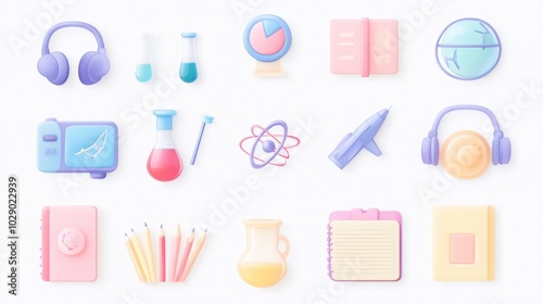 cute, illustration, education, science, colourful, design, creative, digital, vector, graphic, art, fun, element, study, cognition, tool, school, technology, icon, aesthetic, trendy, modern, learning, teacher, classroom, supply, research, laboratory, chemistry, physics, biology, creativity, life events, art supply, engagement, chart, globe, notebook, graph, book, earphones, media, animation, symbol, image, visual, shape