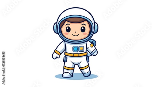 astronaut, girl, cartoon, cute, space, children, happy, friendly, character, illustration, adorable, walking, suit, helmet, backpack, design, digital, drawing, graphic, whimsical, children, optimistic, positive