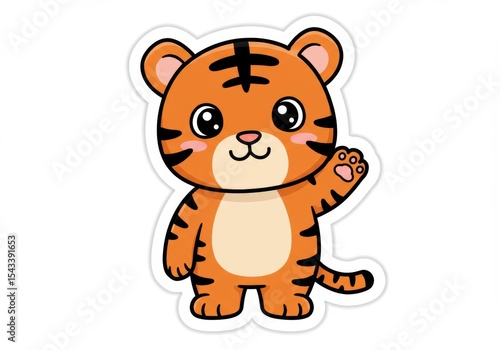 tiger, cartoon, waving, cute, celebration, international, day, animal, wildlife, character, friendly, illustration, happy, adorable, fun, cheerful, greeting, drawing, nature, conservation, awareness, stripey, paw, face, eye, smile, ear, tail, mascot, children, playful, orange, black, stripes, expression, gesture, protection, environment, fauna, endangered, preserve, protect, children, joyful, artistic