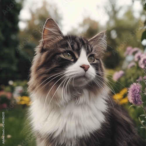 Cute cat picture on a bright day, generative AI illustration