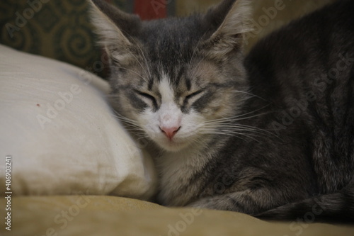 cute cat sleeps on the sofa
