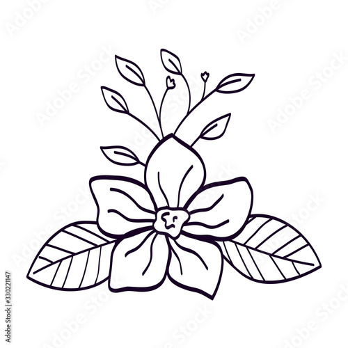 cute flower with branch and leafs line style icon vector illustration design