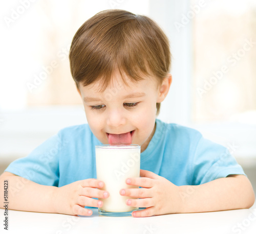 Cute little boy with a glass of milk