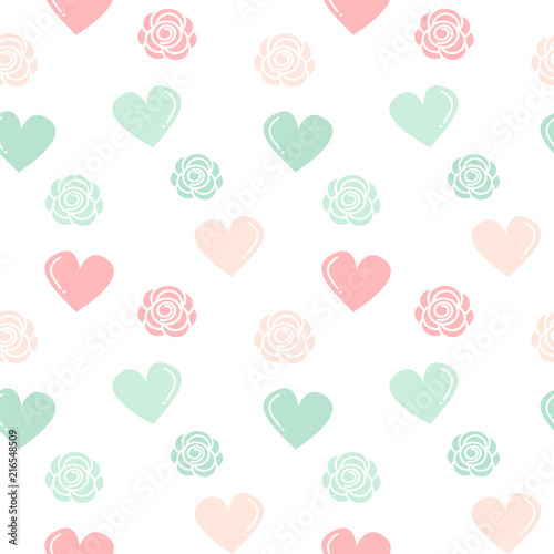 cute lovely hearts and roses seamless vector pattern background illustration