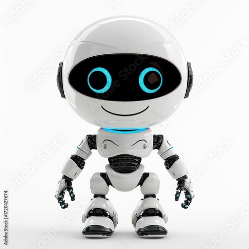 Cute realistic android robot smiling isolated