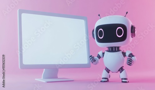 Cute Robot Presenting on a Blank Computer Screen