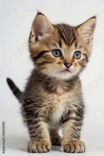 Cute tabby kitten playing on white background