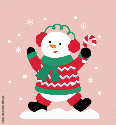 Cute winter Christmas snowman flat stock vector illustration. Good for greeting card,poster, banner, leaflet.