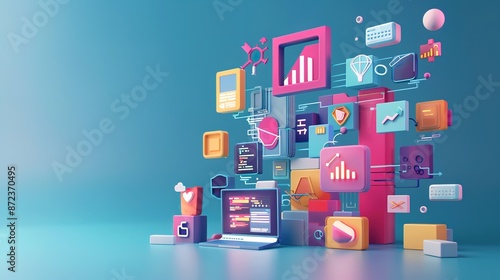 Cybernetic Code Symphony: A 3D Digital Collage of Web Development Symbols in Virtual Space