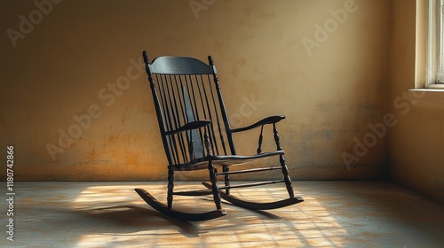 rocking chair, wood, antique, vintage, old, chair, dark, brown, room, corner, sunlight, shadow, floor, wall, window, rustic, grunge, textured, weathered, empty, solitary, stillness, quiet, peaceful, calm, serene, aged, nostalgic, home, interior