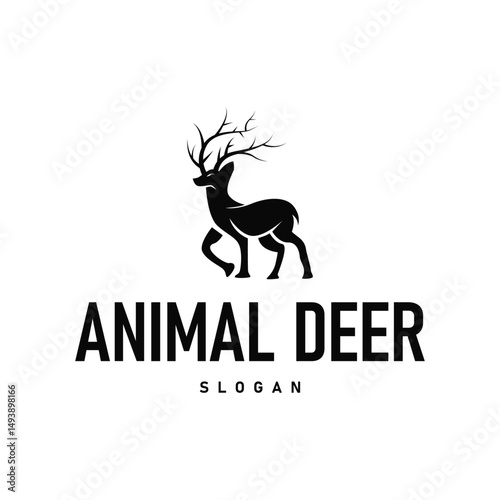 deer logo silhouette concept with majestic and luxurious deer animal and antlers black silhouette of forest animal, nature design template illustration