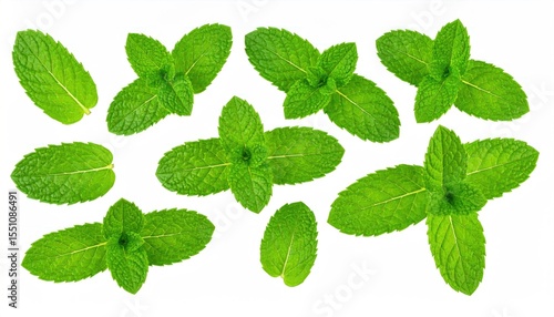 Delicate arrangement of fresh mint leaves isolated on a transparent background