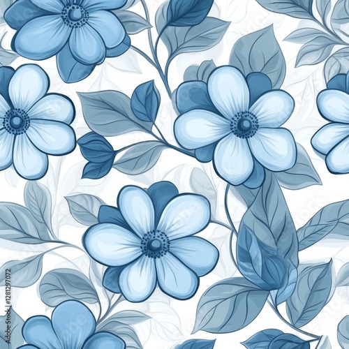 floral, seamless, pattern, blue, flower, background, white, design, decor, wallpaper, graphic, illustration, art, vector, digital, print, vintage, botanical, elegant, nature, classic, style, repeat, texture, background, decorative, image, flower, soft, pastel, modern, stylish, romantic