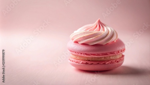Delicate Pink Macaron with Swirled Cream Topping on a Soft Pink Background