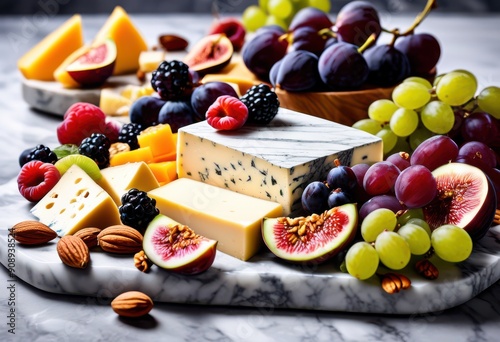 delicious assortment cheeses displayed elegant marble platter fresh fruits nuts, gourmet, dairy, snack, appetizer, presentation, delicacy, variety, texture