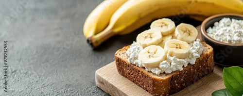 Delicious banana toast topped with cottage cheese and sliced bananas, perfect for a healthy breakfast or snack.