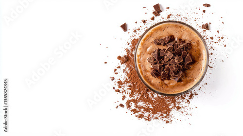 Delicious chocolate curls on creamy latte for perfect coffee break inspiration