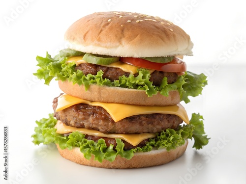 Delicious Double Cheeseburger with Fresh Lettuce and Tomato