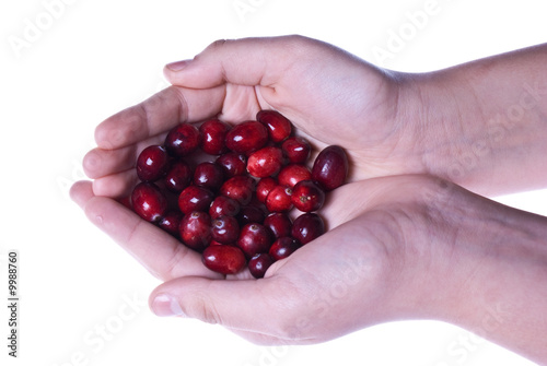 Delicious fresh organic cranberries in two cupped hands
